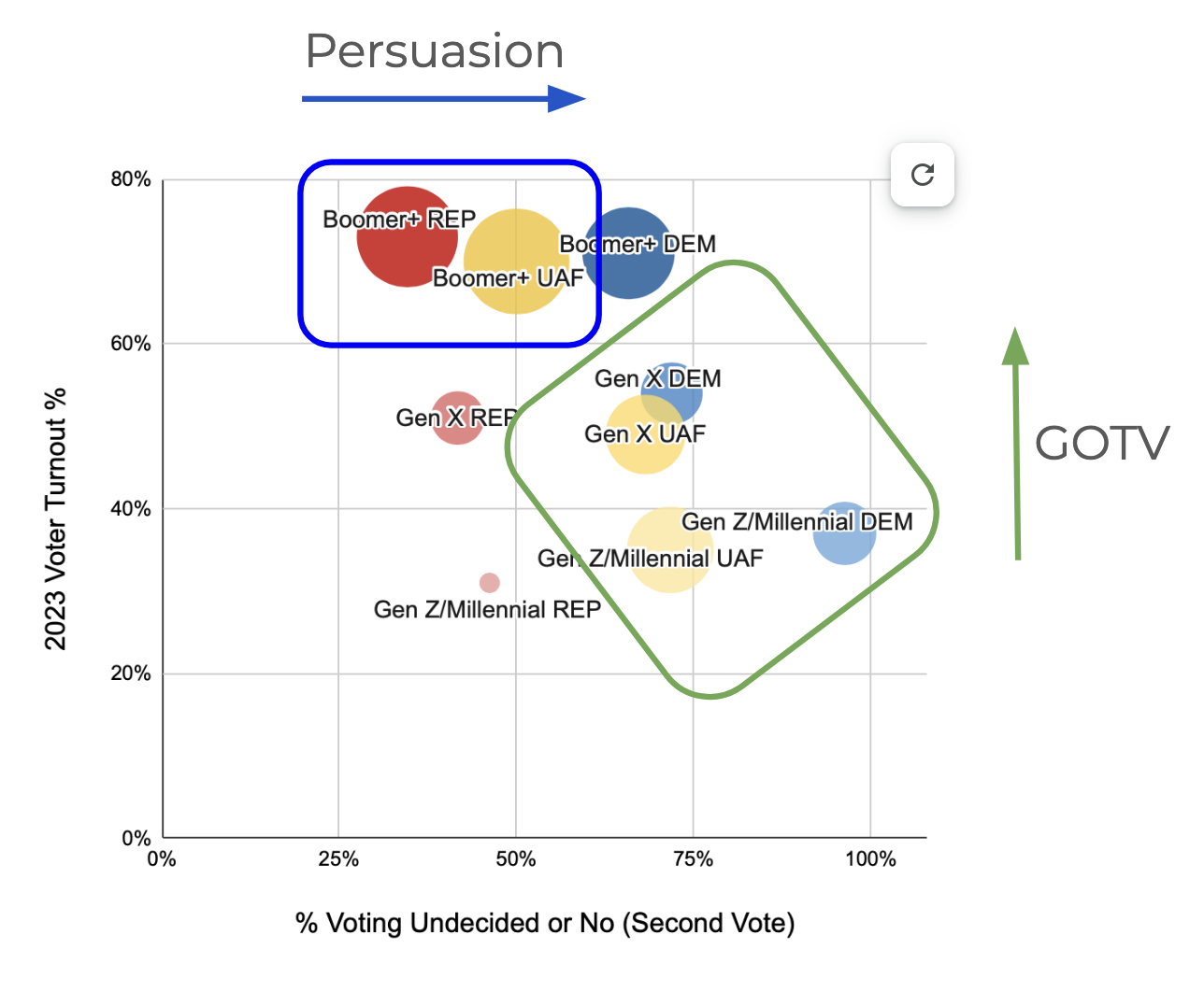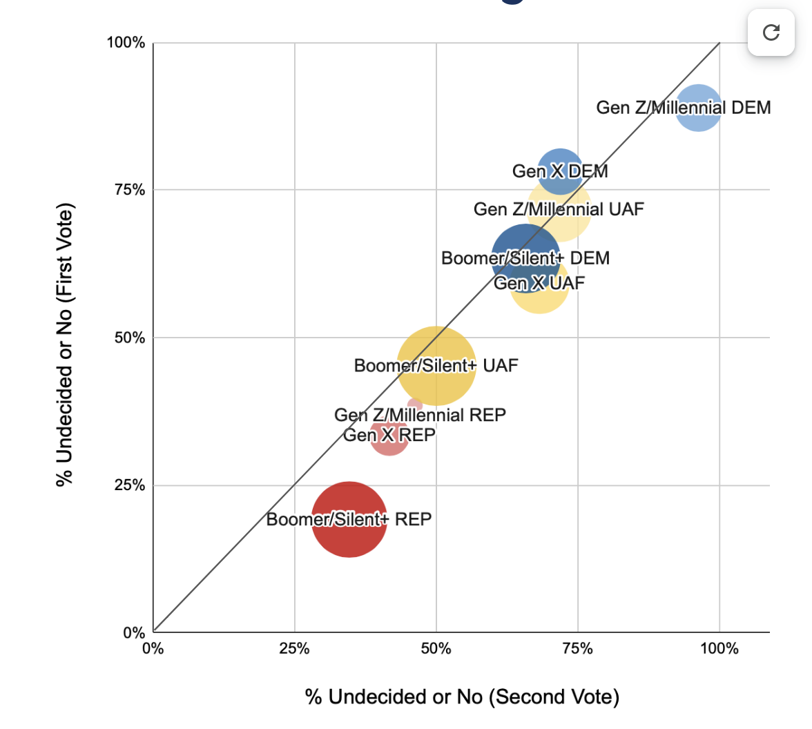 The final results of the election at 54 Yes/46 No closely mirror our findings 2 months out (53 Yes/47No or Undecided). This result showcases the stickiness of voter preferences and affirms our findings elsewhere that undecided voters overwhelmingly end up voting no.