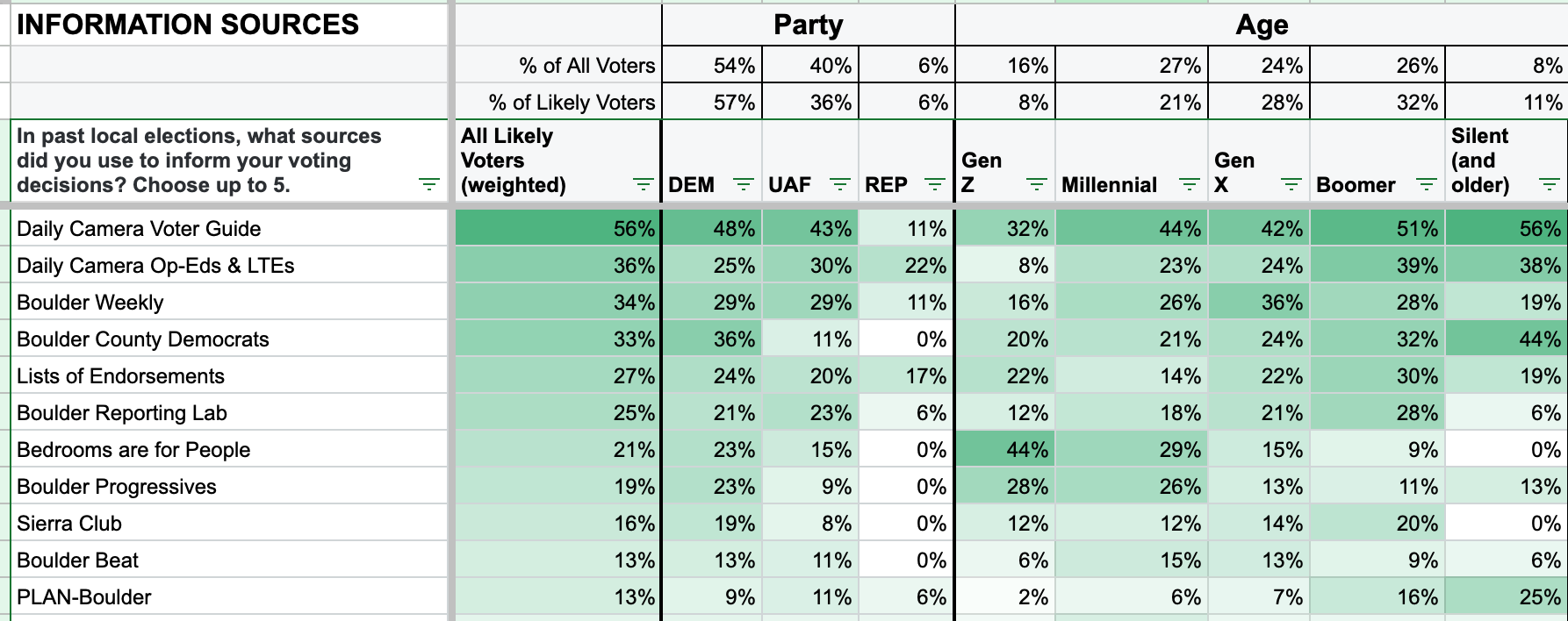 We frequently test where folks get their local election news from.